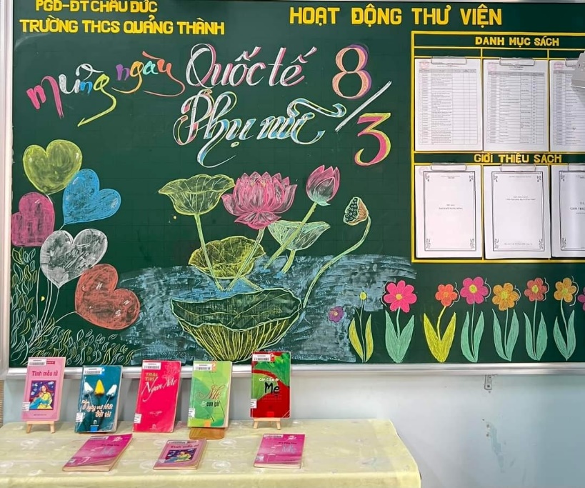 Cũng trong dịp này, Thư viện trường THCS Quảng Thành đã trang trí, dành riêng một khu vực nhằm tôn vinh "Những người Phụ nữ tuyệt vời ta yêu".
